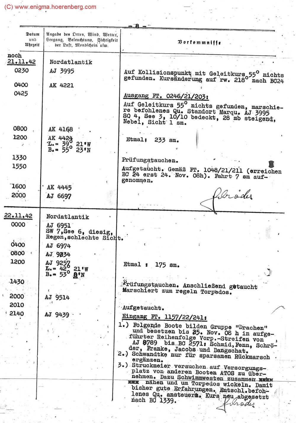 Auf Geleitkurs 55° nichts gefunden, marschie-
