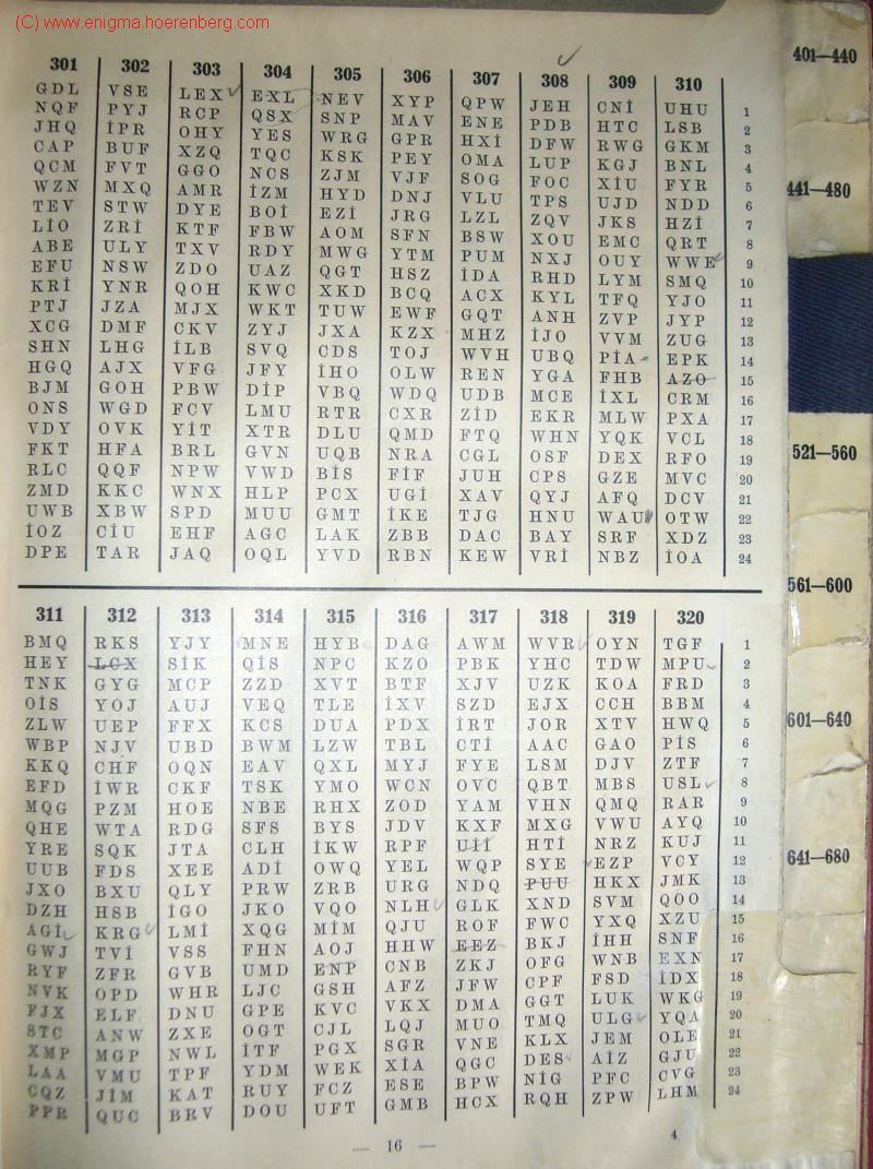 ![]() K-Book SpaltenlisteVerfahrenkenngruppe: We choose JMK from column 320 and row 13 from the Kenngruppenbuch part 1 Spaltenliste (column list). The rows we choosed are part of the message key! Keep it in your mind... |