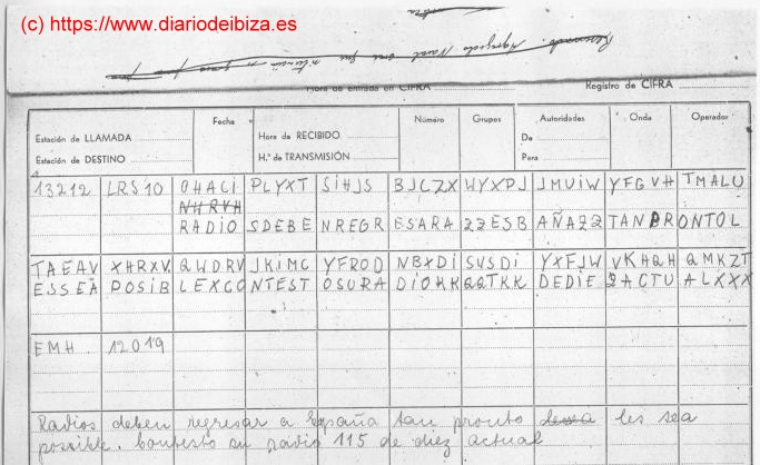 - According to the original article the message was sent to the Naval Attaché of the Franco-Regime during the Spanish civil war.