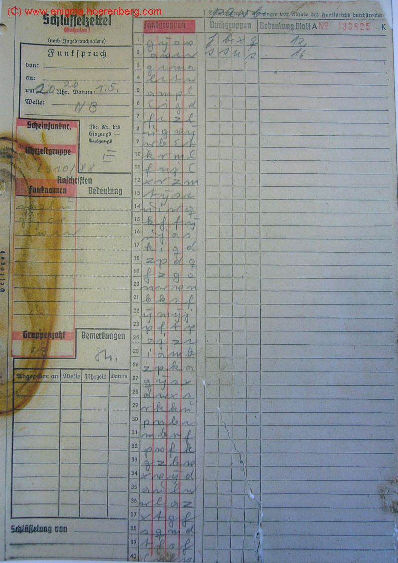 Message P1030687ENIGMA M4 MESSAGE KEY (Nachricht P1030687):