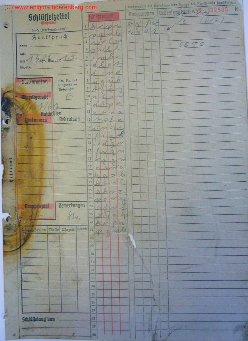 Message P1030676ENIGMA M4 MESSAGE KEY (Nachricht P1030676):