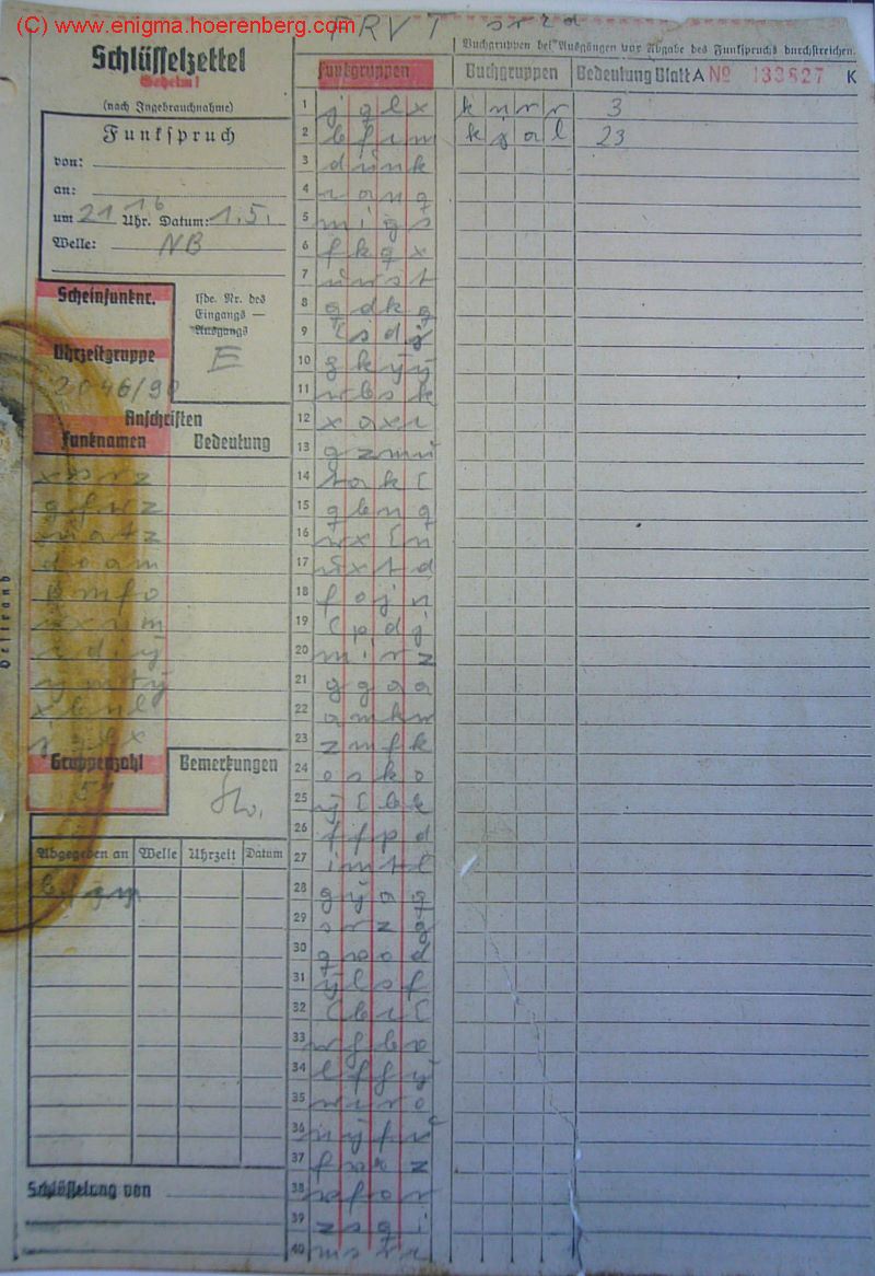 Message P1030689ENIGMA M4 MESSAGE KEY (Nachricht P1030689):
