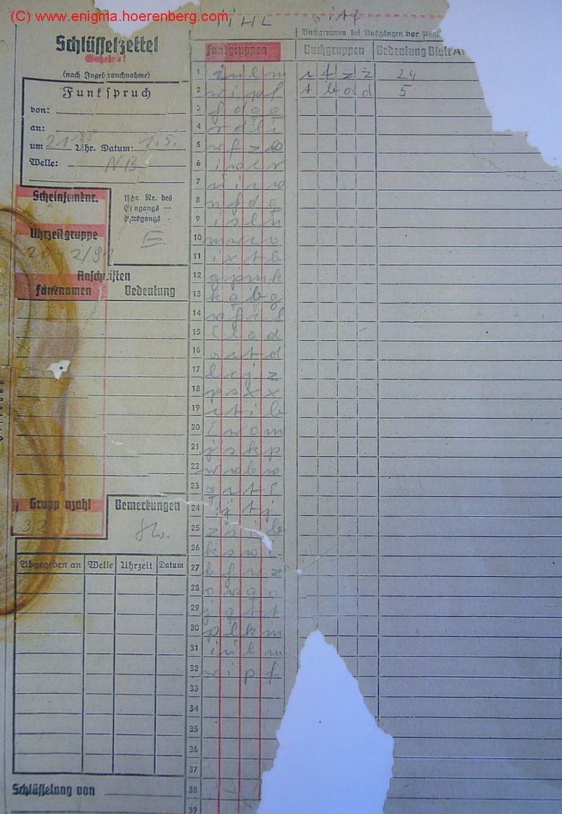 Message P1030692ENIGMA M4 MESSAGE KEY (Nachricht P1030692):