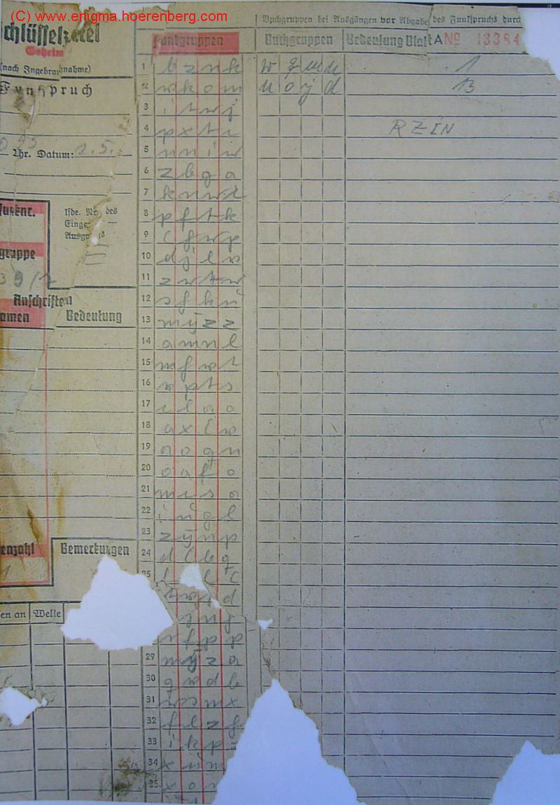Message P1030701ENIGMA M4 MESSAGE KEY (Nachricht P1030701):