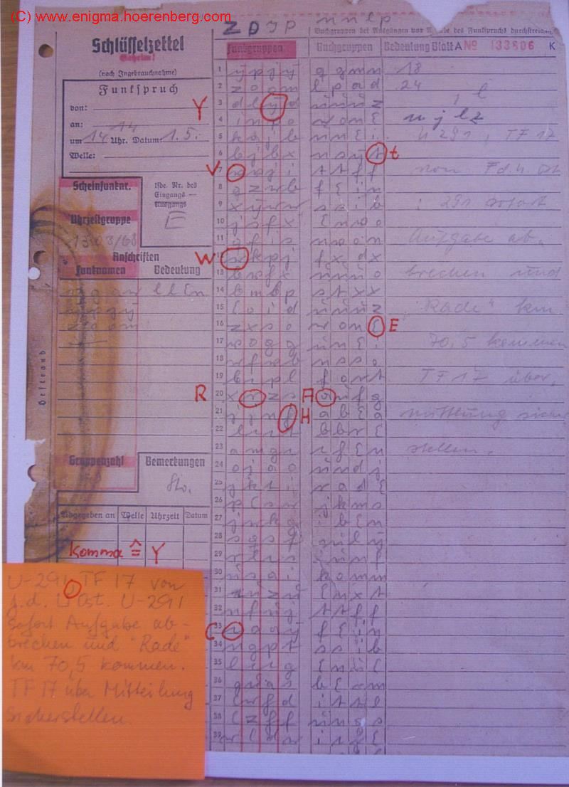 U-291 sofort Aufgabe abbrechen und “Rade” [auf] km 70,5 kommen. T.F. 17 Übermittlung sicherstellen.
