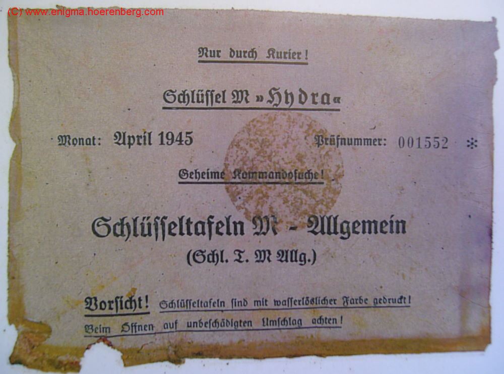Envelope Enigma machine key "HYDRA" from U534