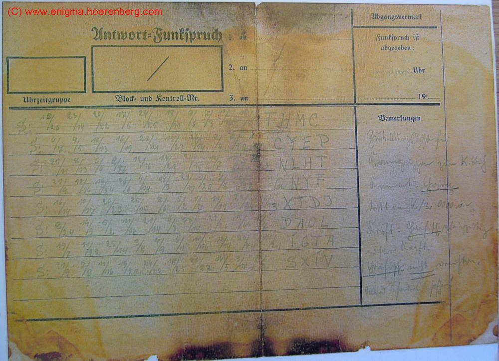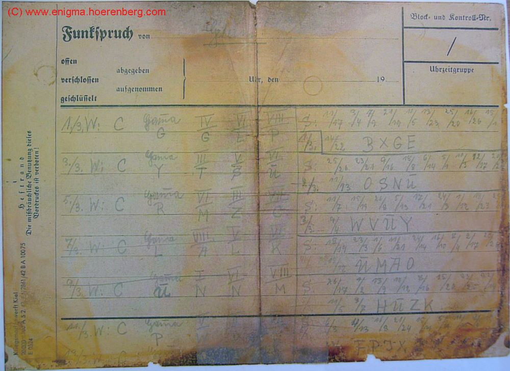 Original Enigma message (Enigma Nachricht / Funkspruch)