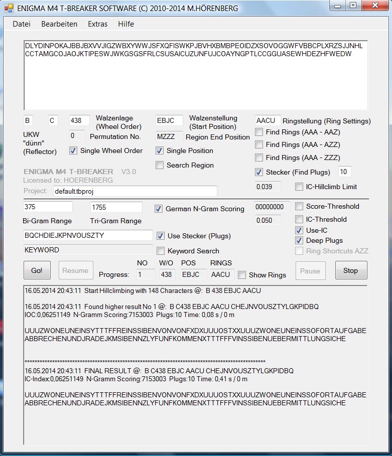 TBreaker V3.0 Enigma message breaking software