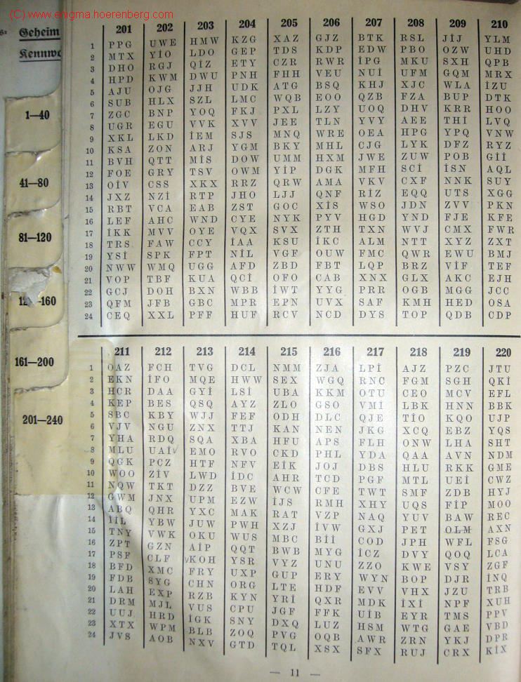 ![]() K-Book SpaltenlisteVerfahrenkenngruppe: We choose JMK from column 320 and row 13 from the Kenngruppenbuch part 1 Spaltenliste (column list). The rows we choosed are part of the message key! Keep it in your mind... |
