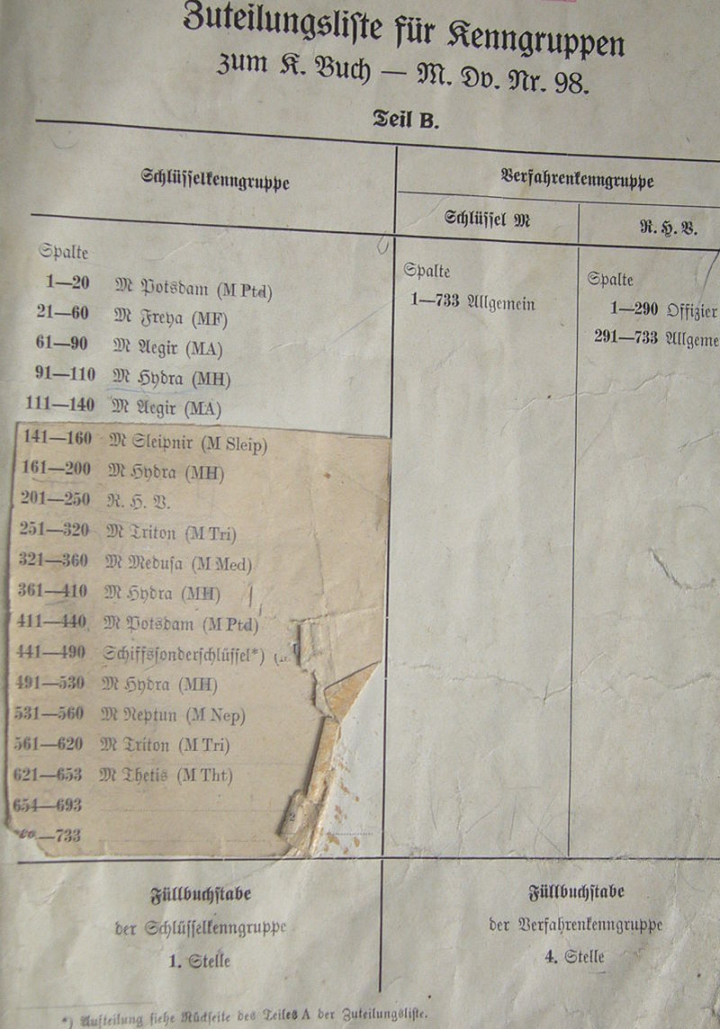 ![]() Table of contentInhaltsverzeichnis Kenngruppenbuch (Table of content: German naval K-Book for Enigma and RHV) |