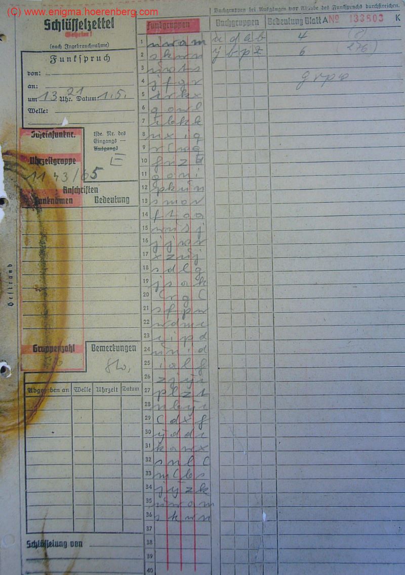 Message P1030673ENIGMA M4 MESSAGE KEY (Nachricht P1030673):