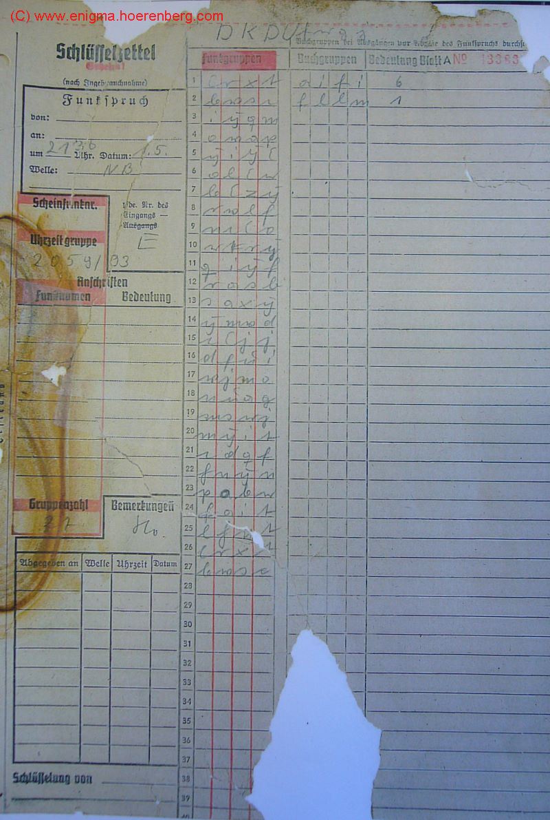 Message P1030691ENIGMA M4 MESSAGE KEY (Nachricht P1030691):